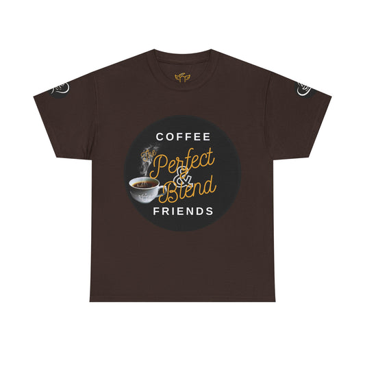 Coffee Lovers Cotton T-shirt - Coffee and Friends the Perfect Blend.