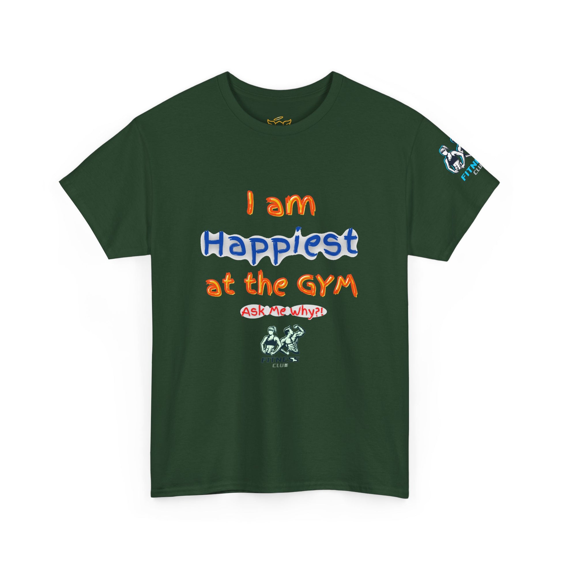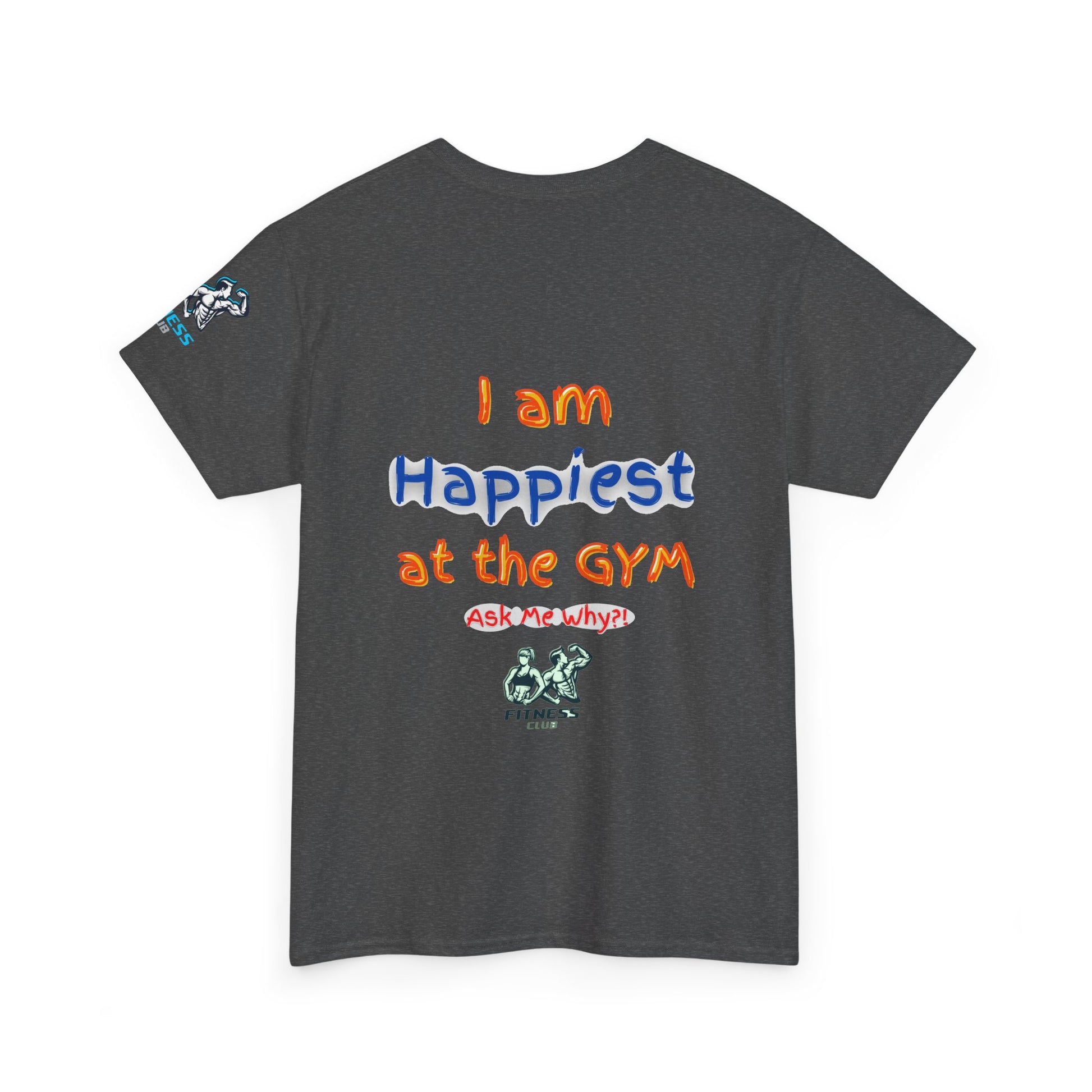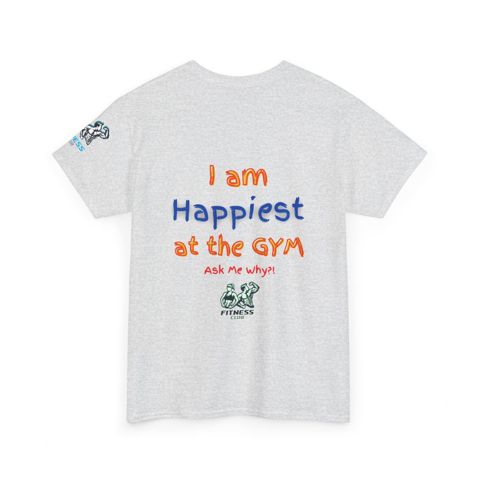 Stay motivated at the GYM with this fitness quotes T-Shirt featuring the phrase " I am happiest at the GYM. Perfect for fitness enthusiasts and gym-goers, this cotton tee offers comfort and durability for year-round wear. Ideal for casual outings or workout sessions, this unisex heavy cotton tee is a must-have for those who love working out.
