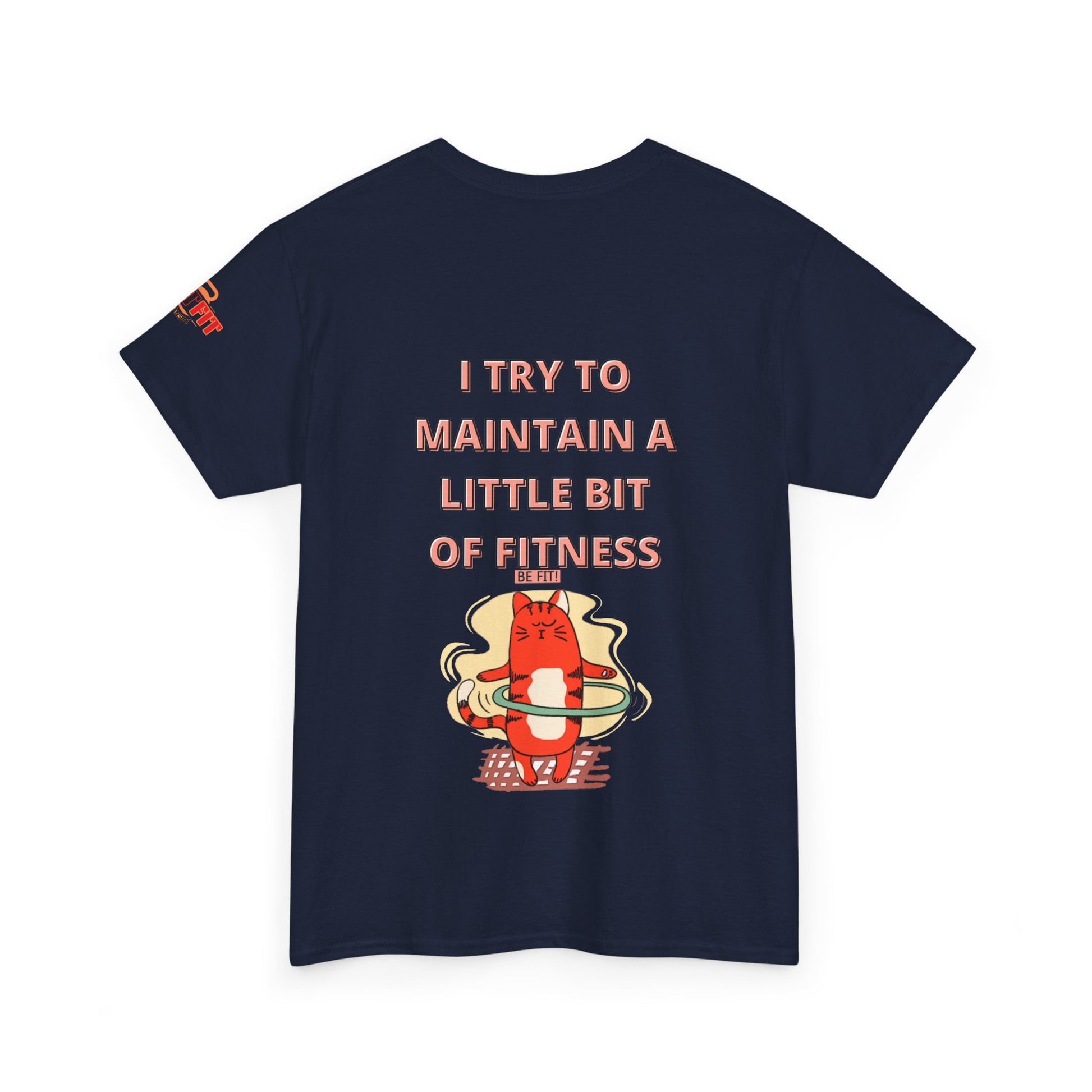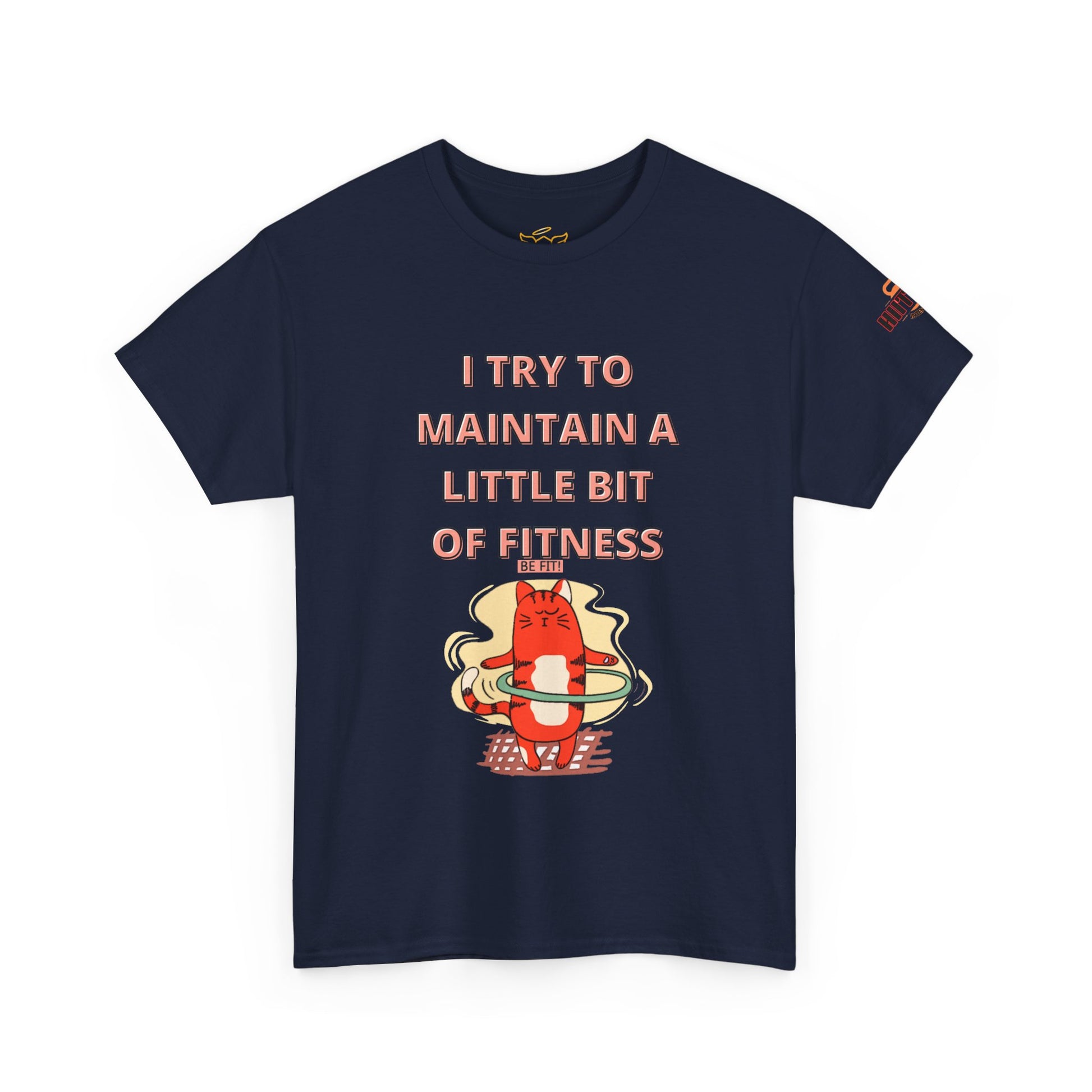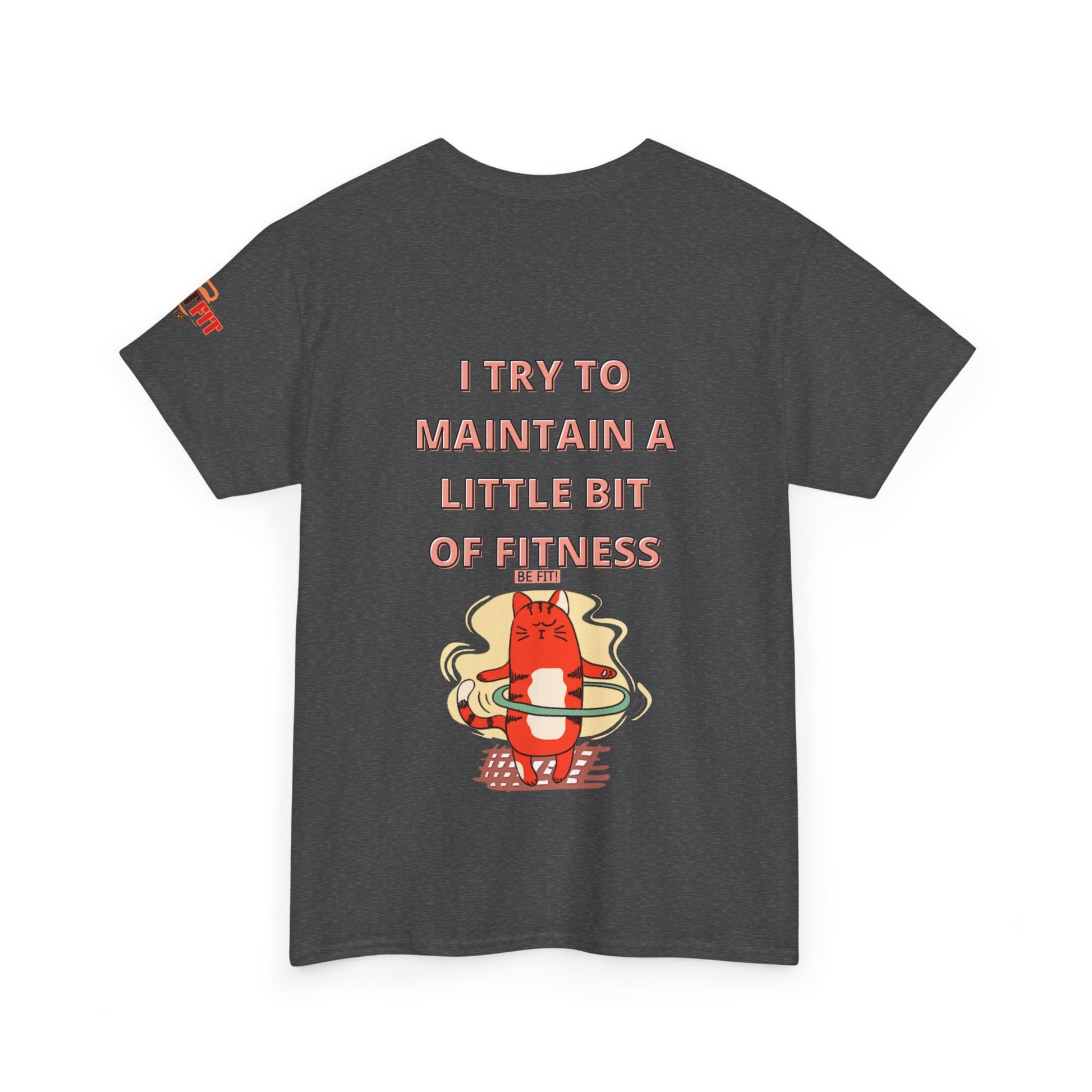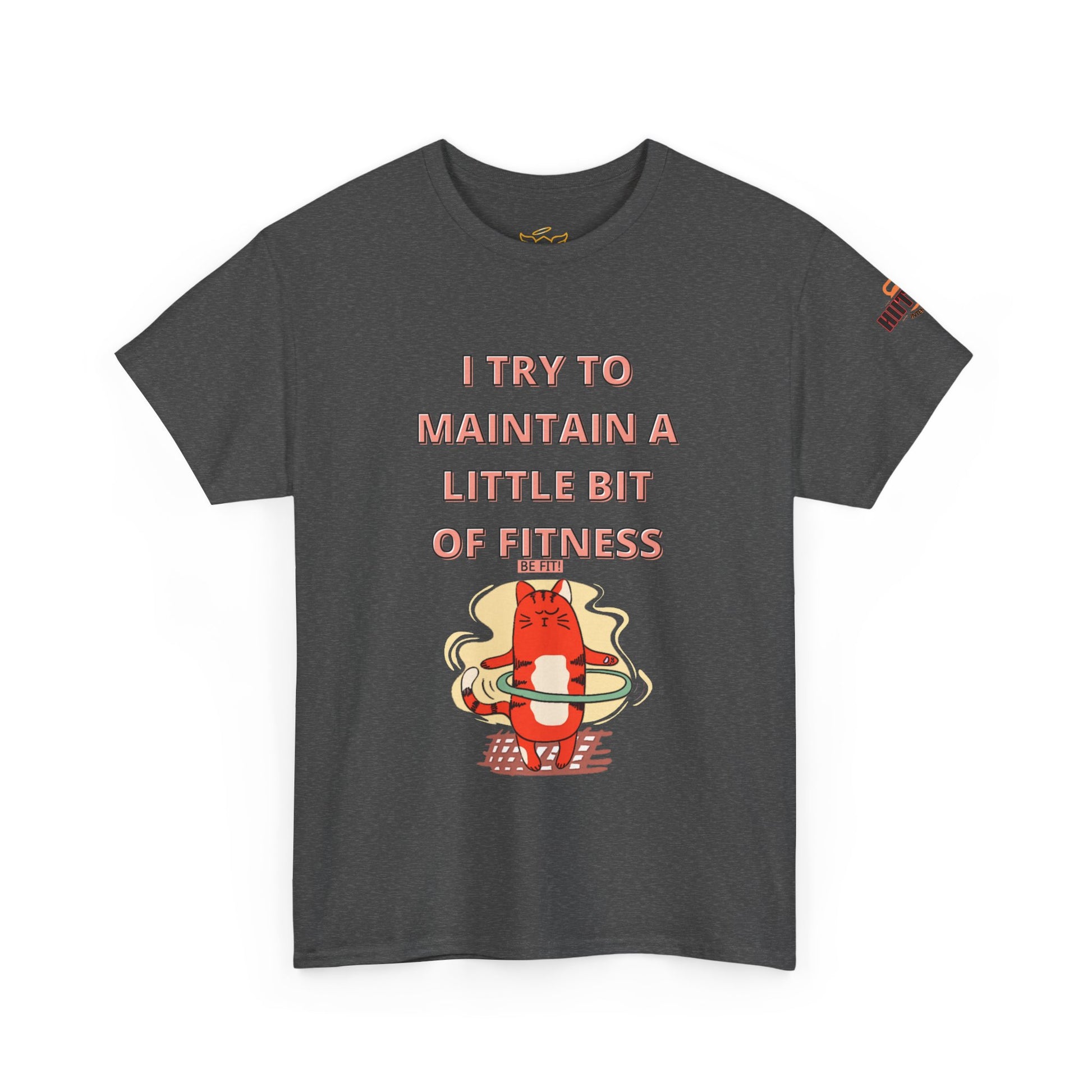 Funny Fitness Quotes Cotton T-SHIRT - "I TRY TO MAINTAIN A LITTLE BIT OF FITNESS". This unisex heavy cotton tee offers a comfy fit with a classic crew neckline. Perfect for fitness enthusiasts or anyone with a sense of humor. Ideal for casual wear or workout sessions. Great for gym-goers, yoga lovers, or those who enjoy a healthy lifestyle. Suitable for occasions like casual outings, gym sessions, or as a fun gift for fitness fanatics.