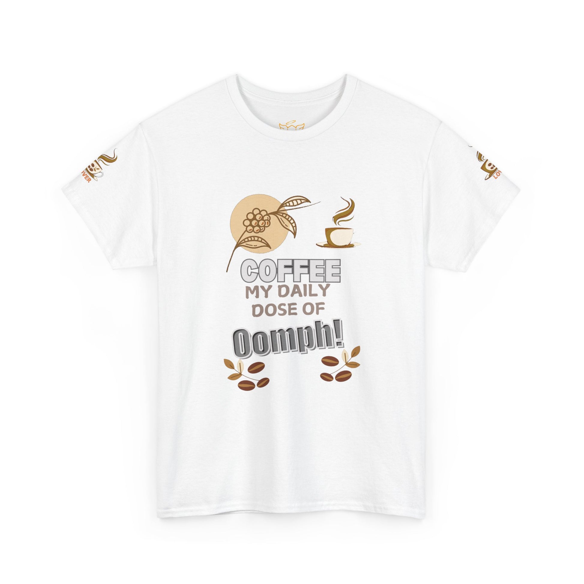 Coffee lovers t-shirt for those who enjoy their coffee for the oomph it gives. This unisex heavy cotton tee is perfect for casual wear and can be styled in various ways, making it a versatile addition to any coffee lover's wardrobe. Ideal for coffee enthusiasts and those who appreciate a good cup of joe to kickstart their day, this t-shirt is a great gift for birthdays, holidays, or any occasion that celebrates the love of coffee.