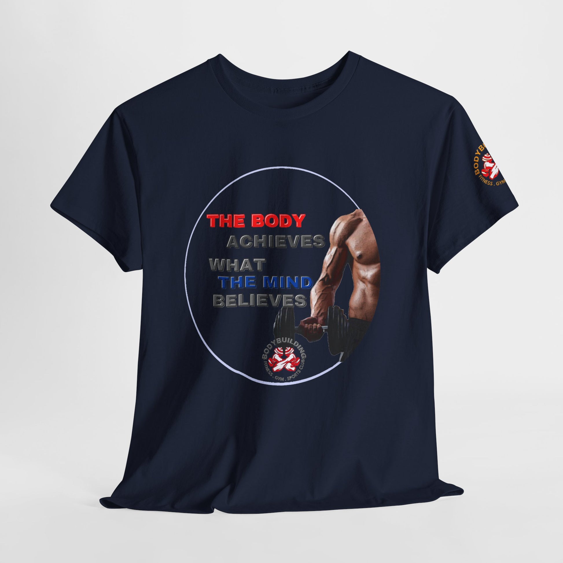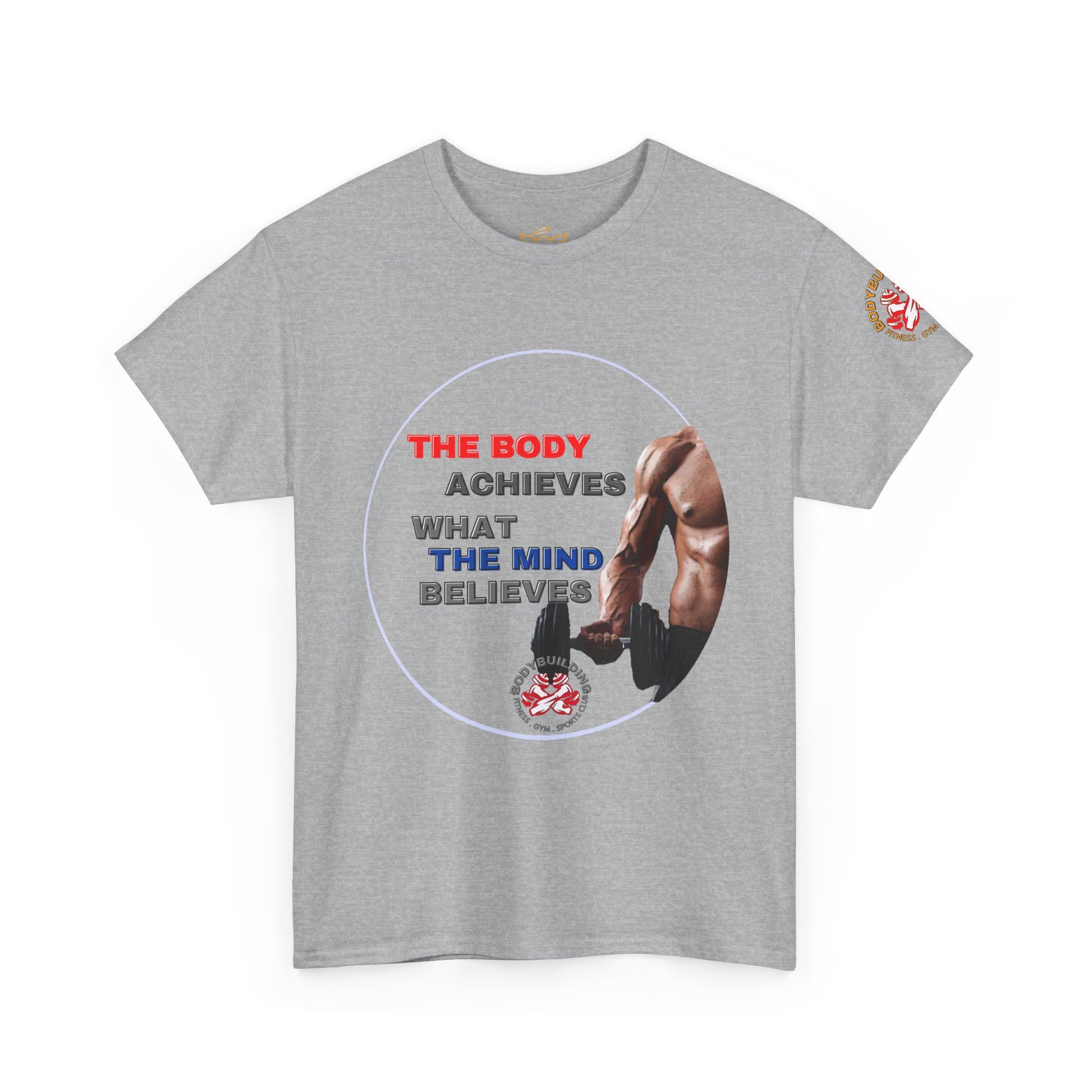 GYM Fitness Quotes Cotton T-Shirt - "THE BODY ACHIEVES .." FQT