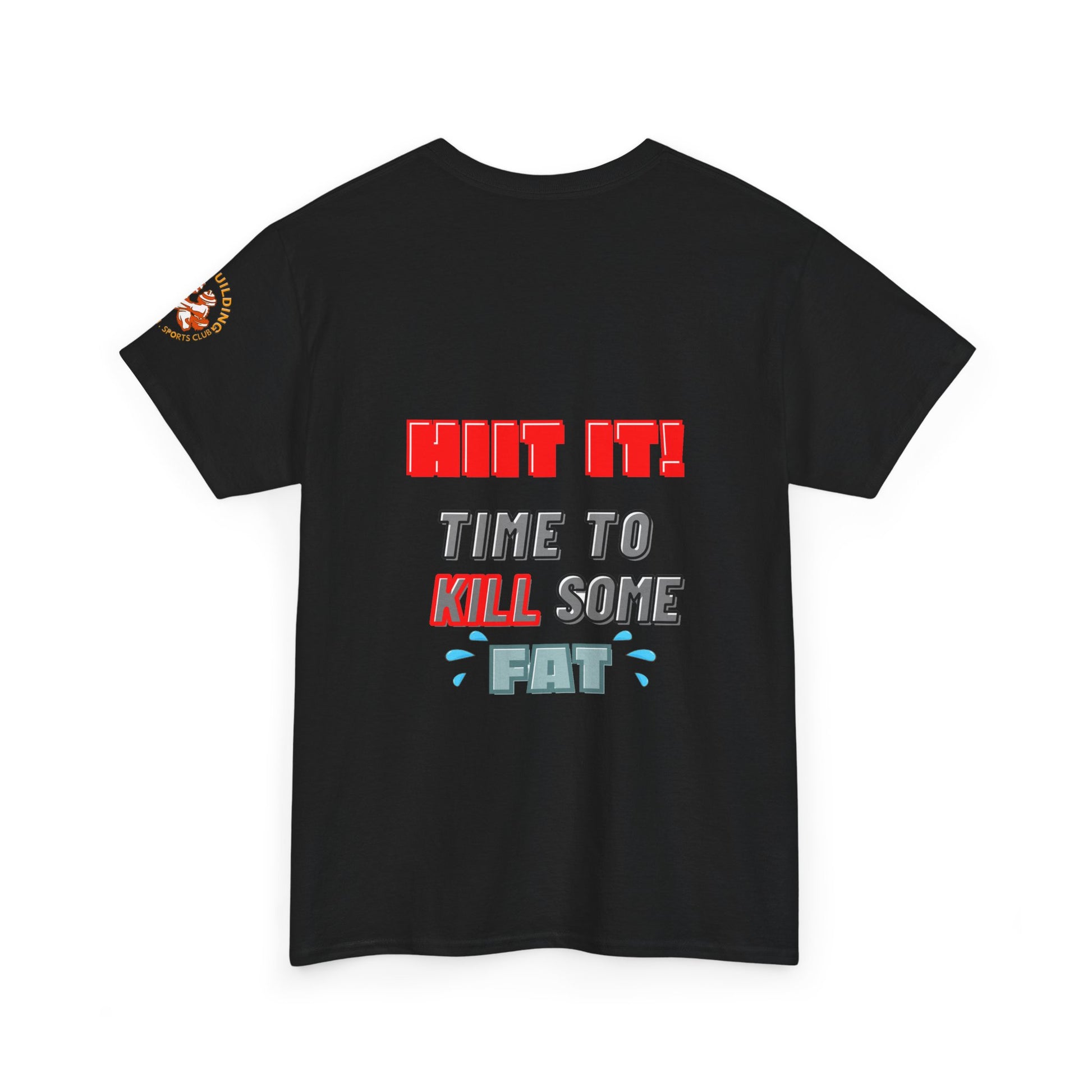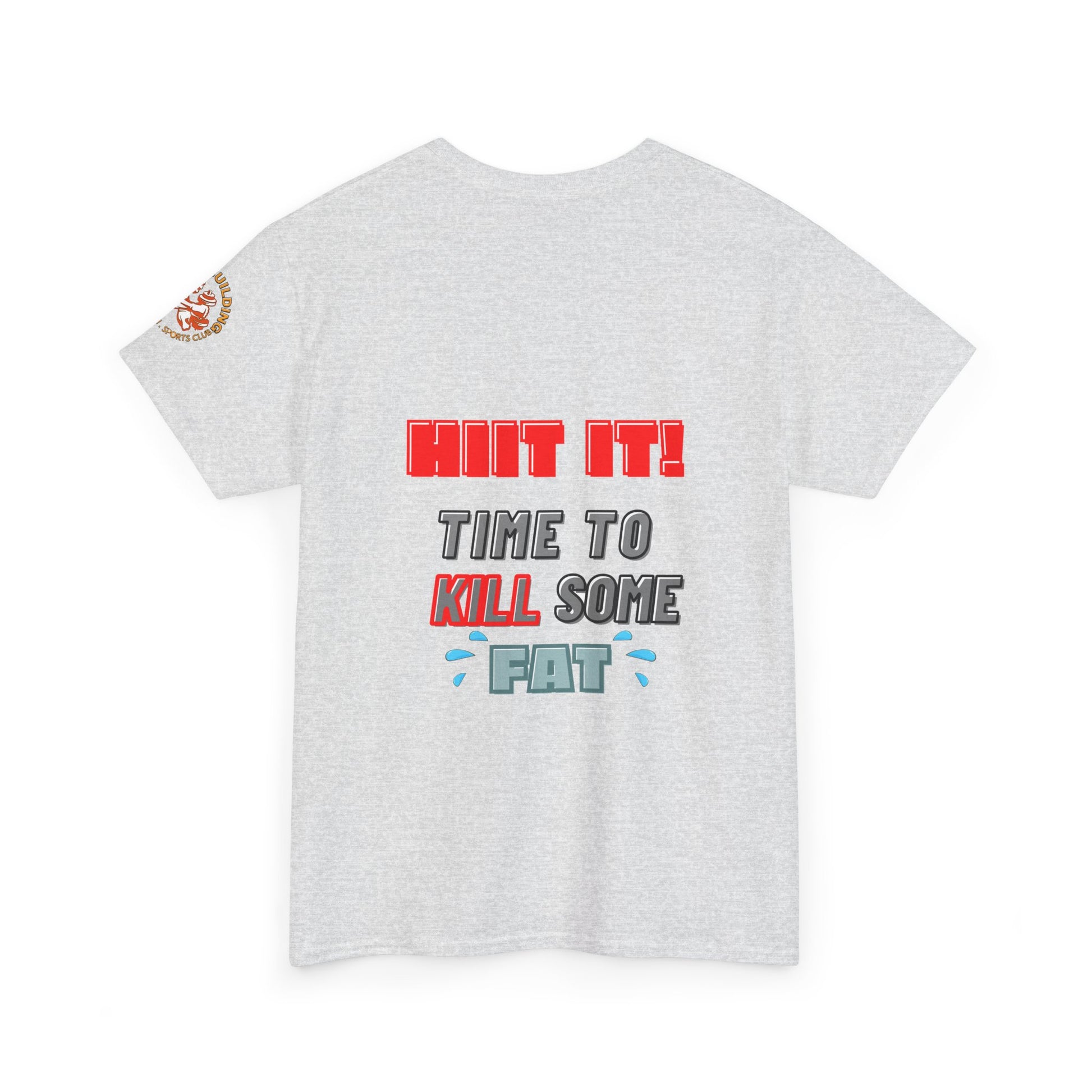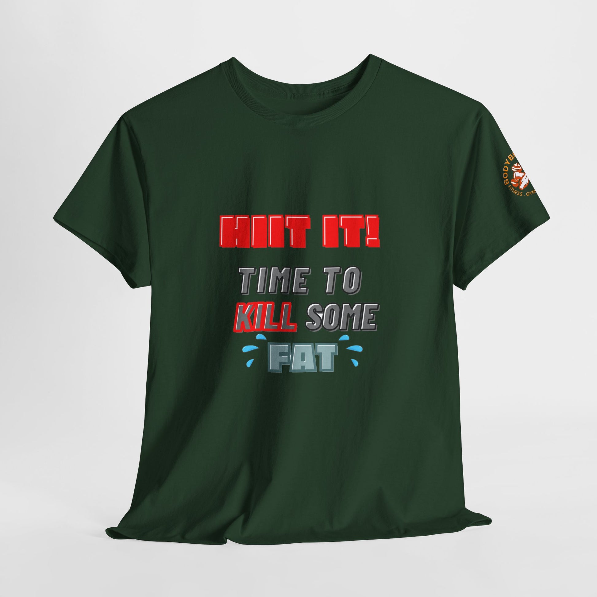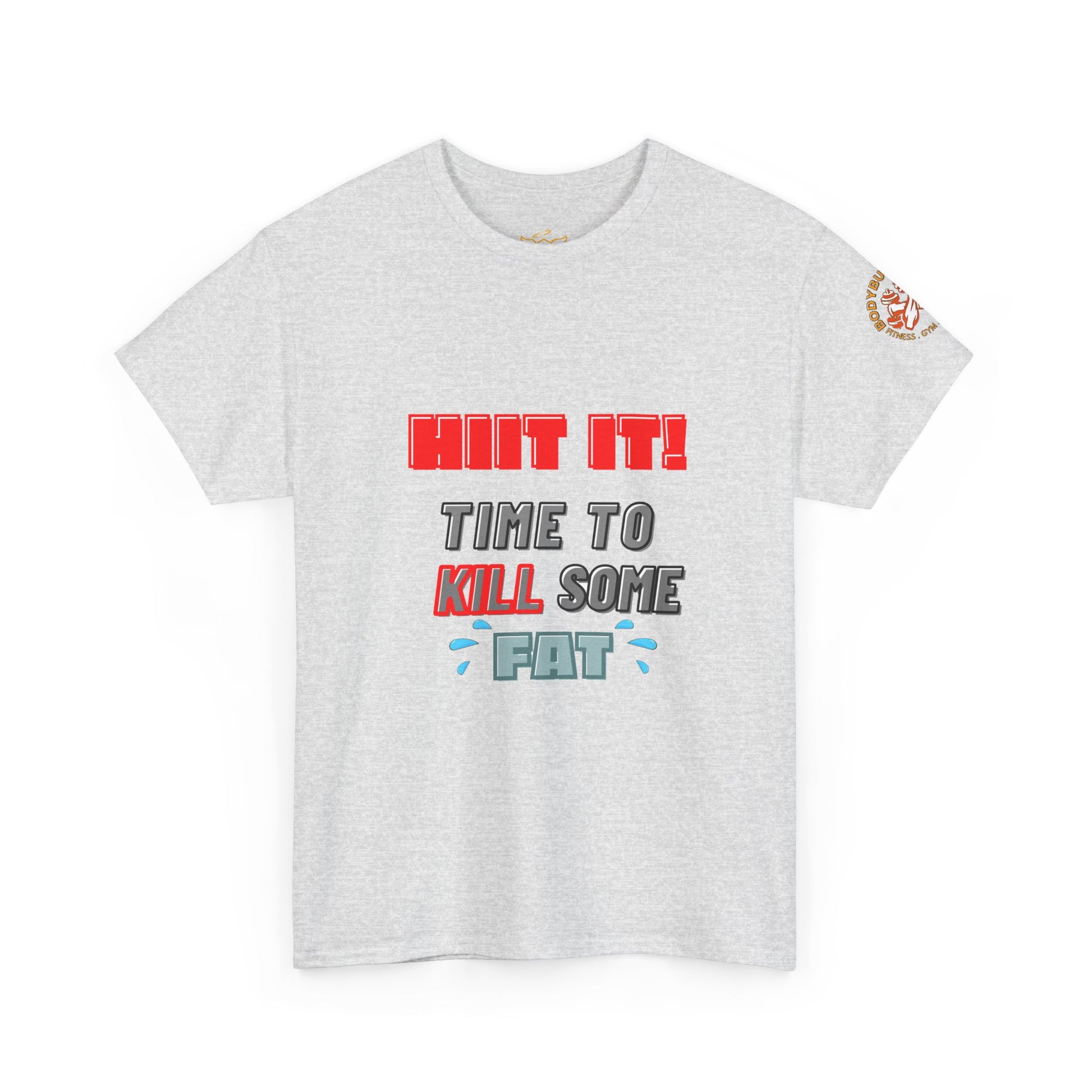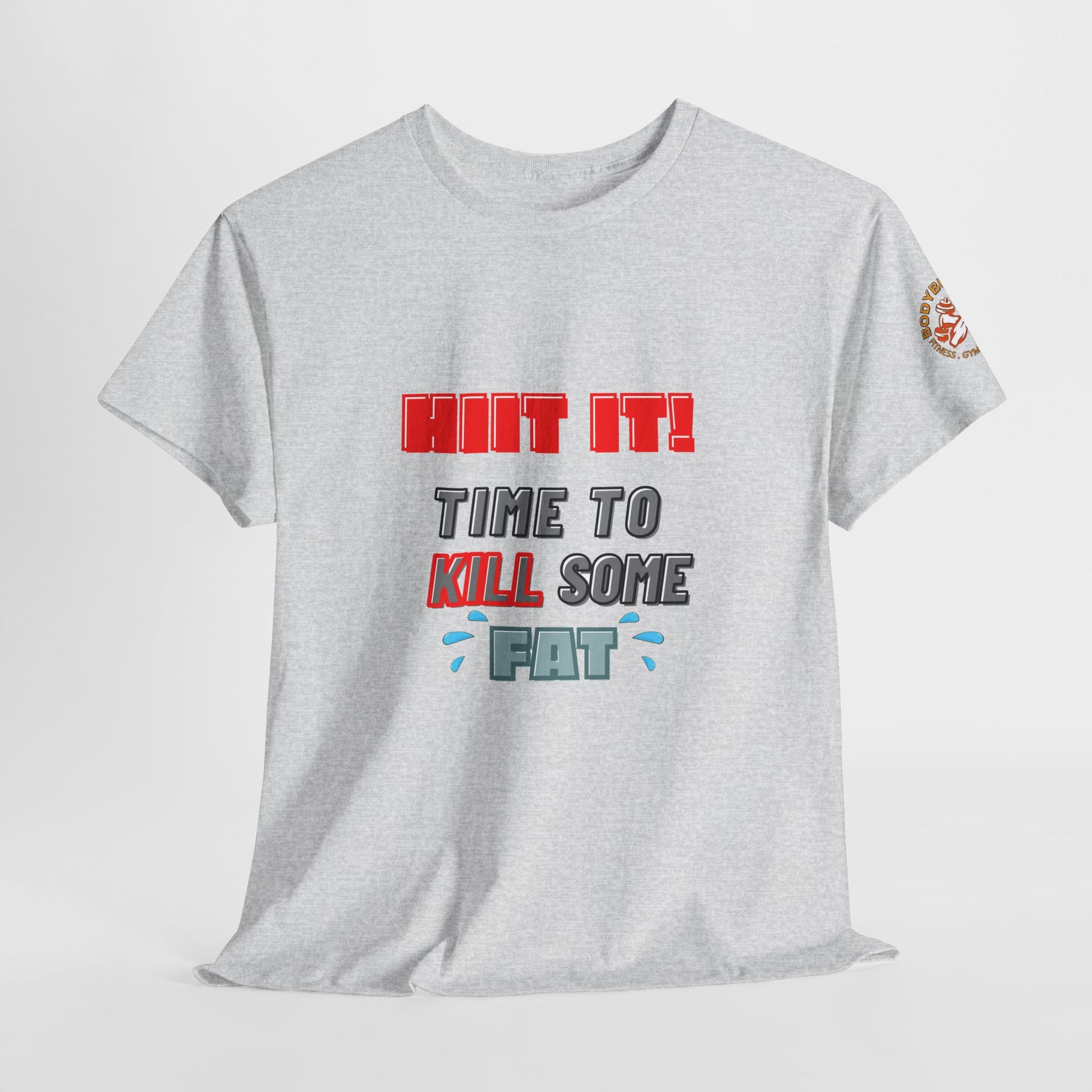 A unisex heavy cotton T-shirt featuring fitness quotes for HIIT enthusiasts. This tee provides a comfortable fit and is perfect for those who love high-intensity workouts. Ideal for gym-goers and fitness enthusiasts who want to make a statement while staying active. Suitable for occasions like workout sessions, sports events, and casual outings.